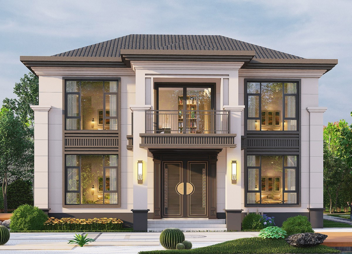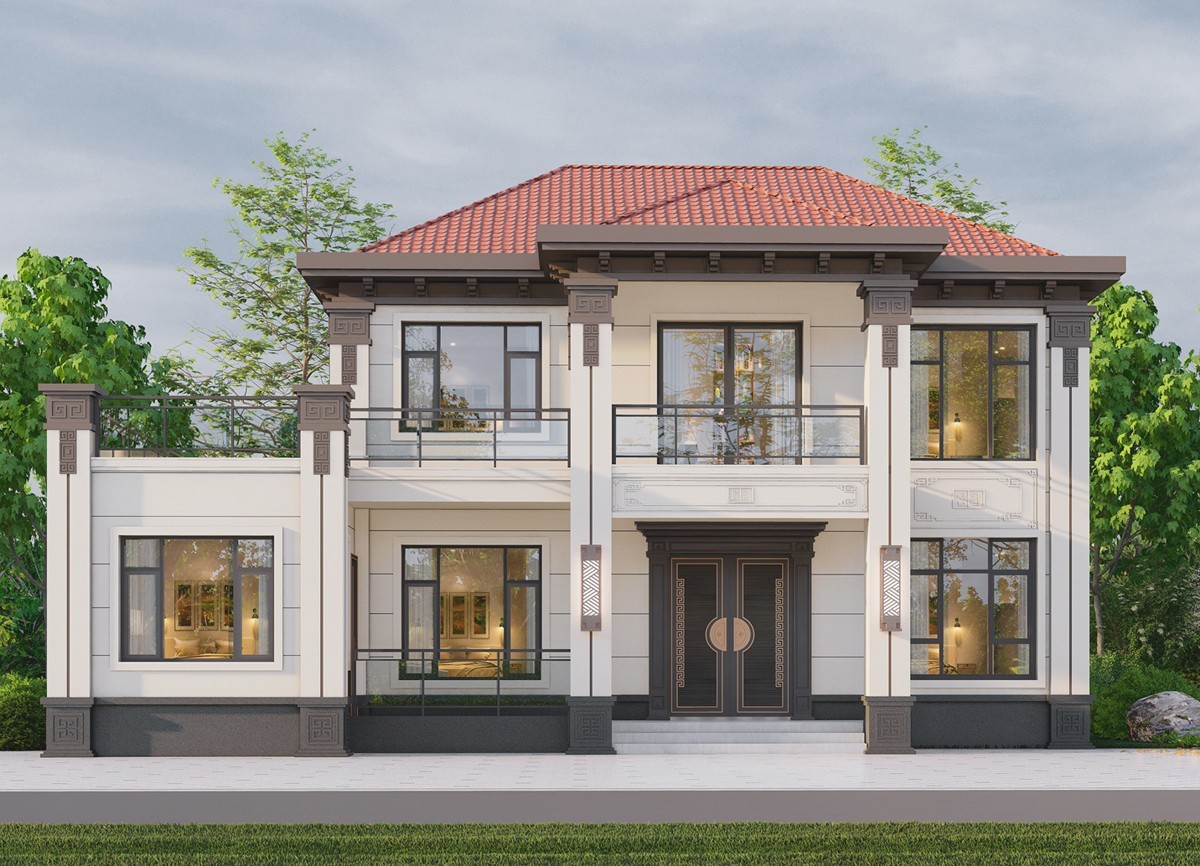天门005 两层新中式(11.36x11.76米)-【易设计】